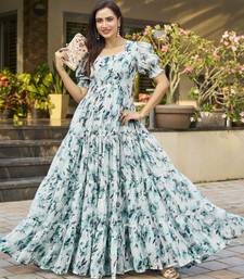 Women Turquoise Blue All Over Floral Print Georgette Fit & Flare Gown