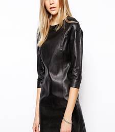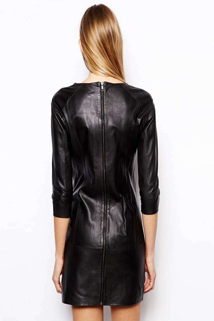 | Product Name | Genuine Lambskin Women's Black Leather Dress 3\4 Sleeve Style Leather Dress | |
