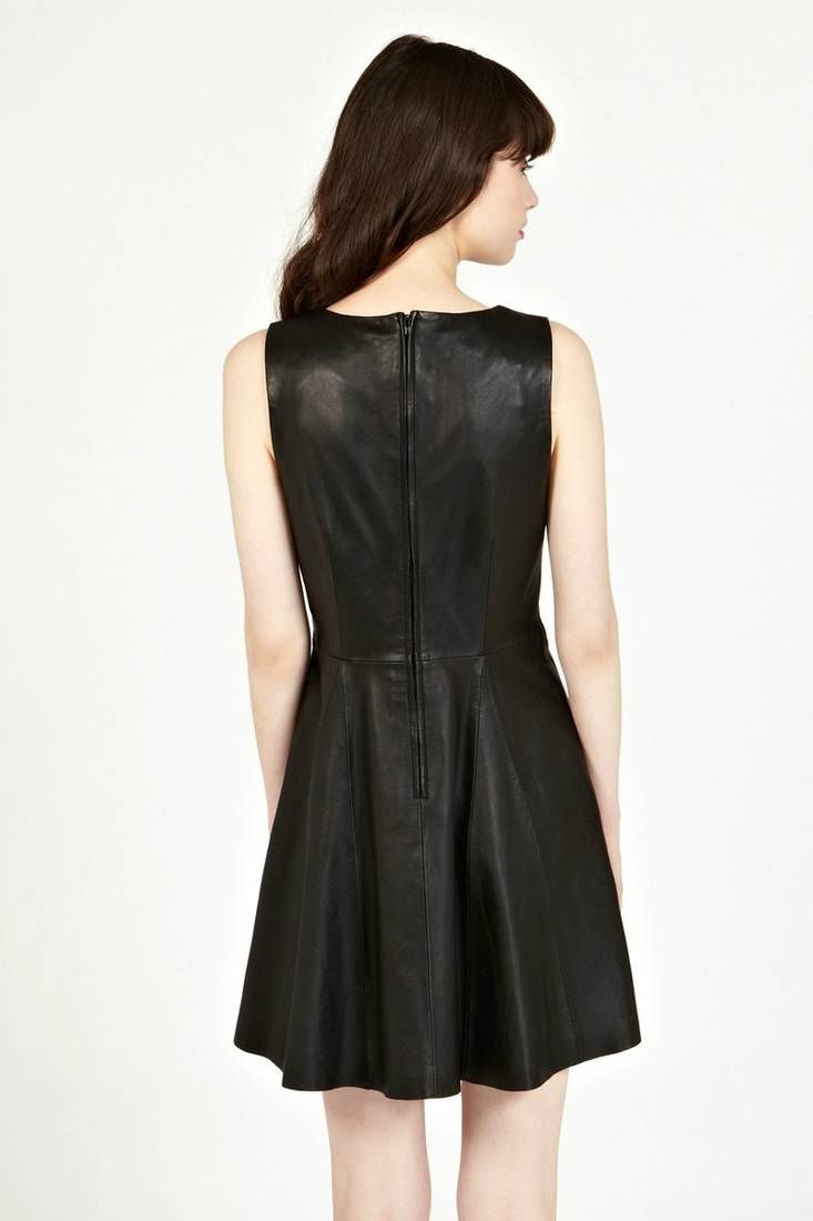 | Product Name | Genuine Lambskin Women's Black Leather Dress Leather Fit & Flare Sleeveless Dress | |