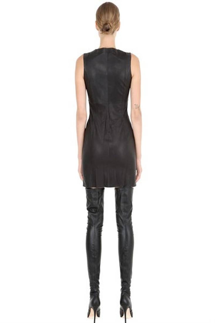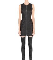 | Product Name | Genuine Lambskin Women's Black Leather Dress Sleeveless Front Zip Party Wear Dress | |