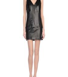 | Product Name | Genuine Lambskin Women's Black Leather Dress Ssleeveless V Neck Casual Dress | |