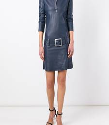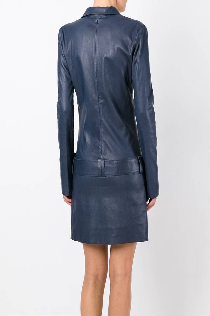 | Product Name | Genuine Lambskin Women's Leather Dress Women Blue Leather Long Sleeve Dress | |