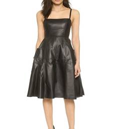 | Product Name | Women Black Soft Lambskin Leather Dress Strappy Midi Dress With Flared Hem | |