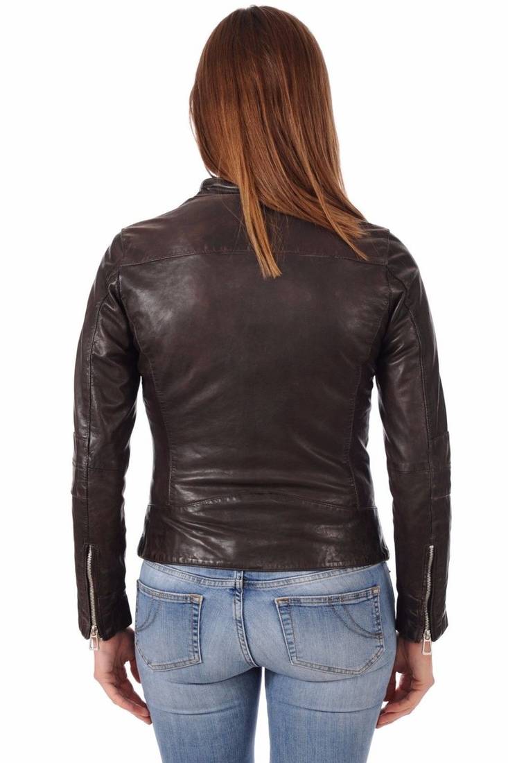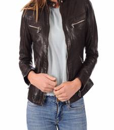 Women's genuine lambskin black leather jacket motorcycle biker jacket-c006
