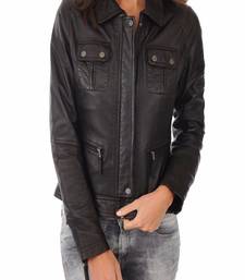Women's genuine lambskin black leather jacket motorcycle biker jacket-c007