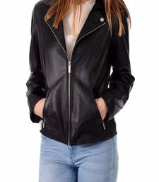 Women's genuine lambskin black leather jacket motorcycle classic jacket-c014