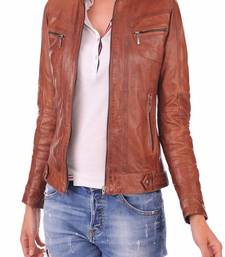 | Product Name | Women's Genuine Lambskin Brown Leather Jacket Motorcycle Classic Jacket C015 | |