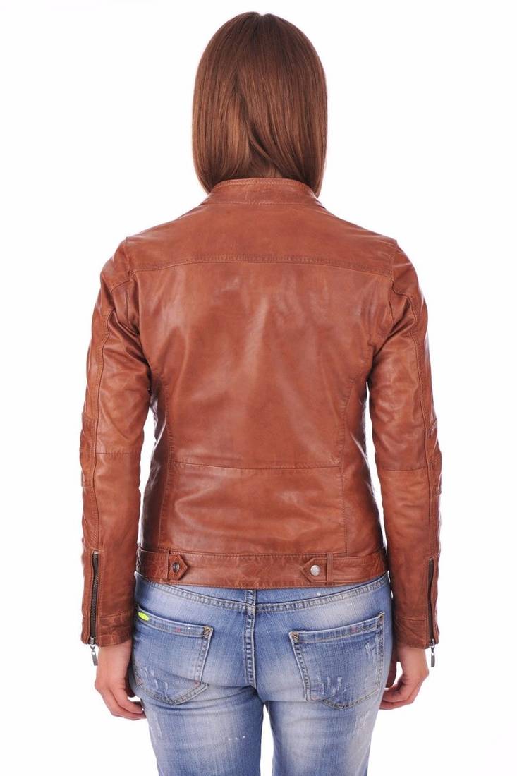 Women's genuine lambskin brown leather jacket motorcycle classic jacket-c015