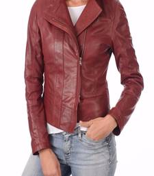 | Product Name | Women's Genuine Lambskin Maroon Leather Motorcycle Slim Fit Biker Jacket | |