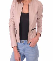 Women's genuine lambskin pink leather jacket motorcycle classic jacket-c018