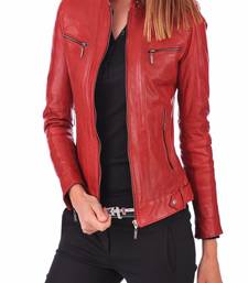 | Product Name | Women's Genuine Red Lambskin Leather Motorcycle Slim Fit Designer Biker Jacket | |