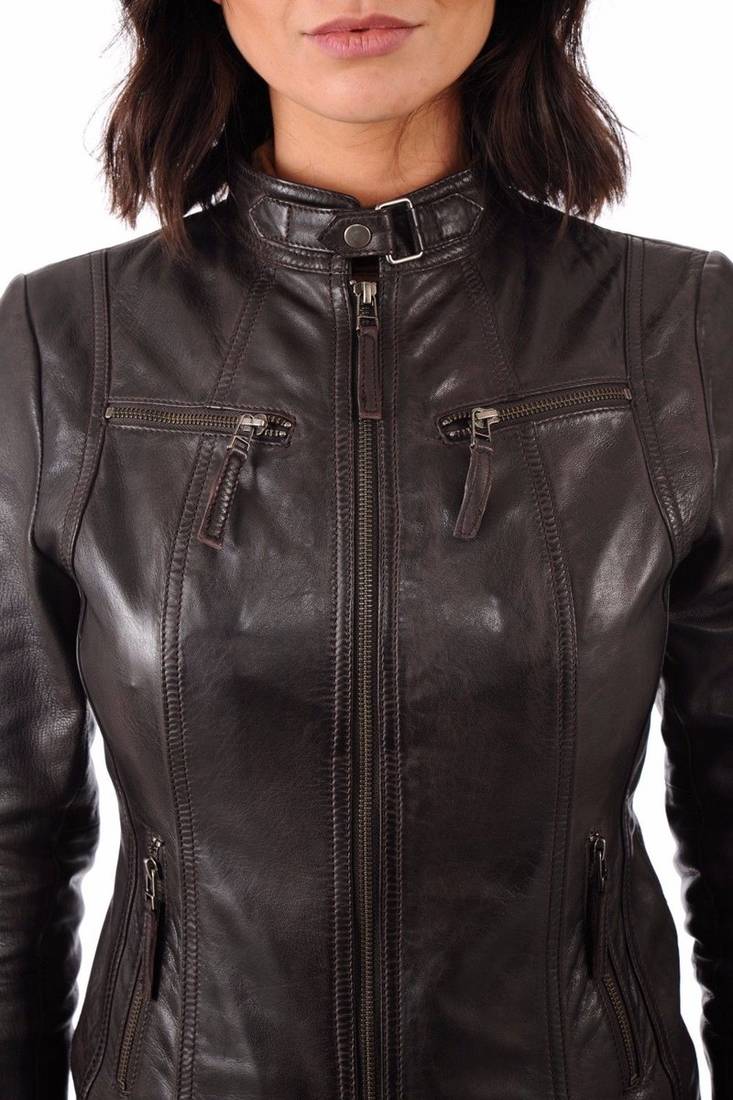 Women’s genuine lambskin black leather biker jacket slim fit designer motorcycle-c104
