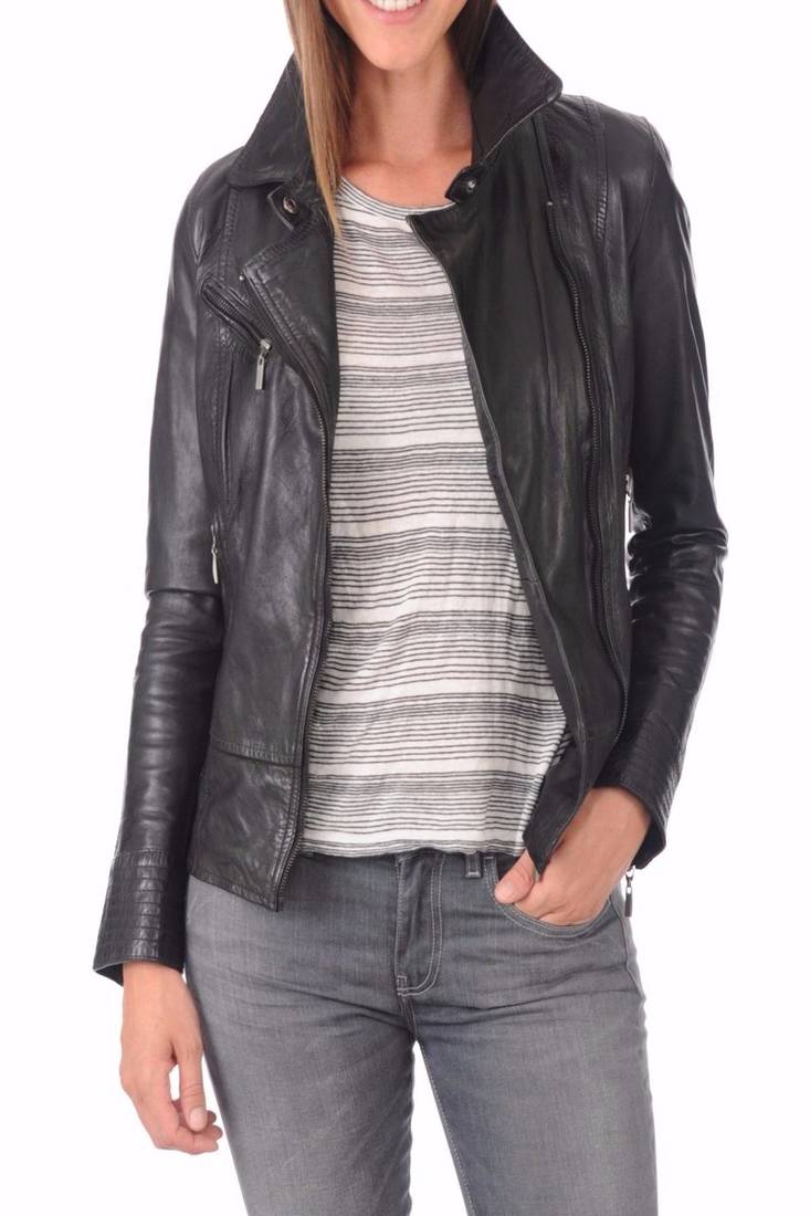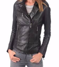 Women’s genuine lambskin black leather biker jacket slim fit designer motorcycle-c107