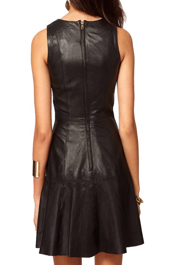 Women’s genuine lambskin black leather dress sleeveless fit & flare dress