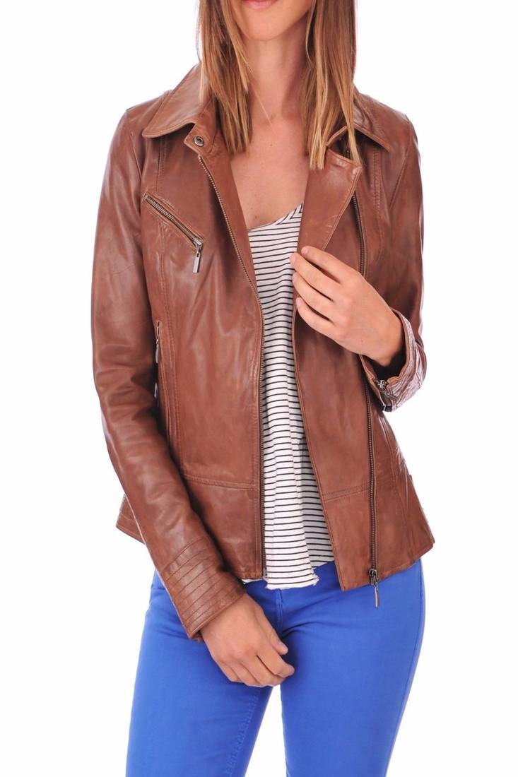 Women’s genuine lambskin brown leather biker jacket slim fit designer motorcycle-c114