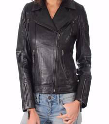 Womens genuine lambskin leather motorcycle slim fit designer ladies biker jacket-c022