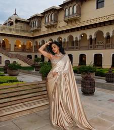 Beige satin embroidered saree