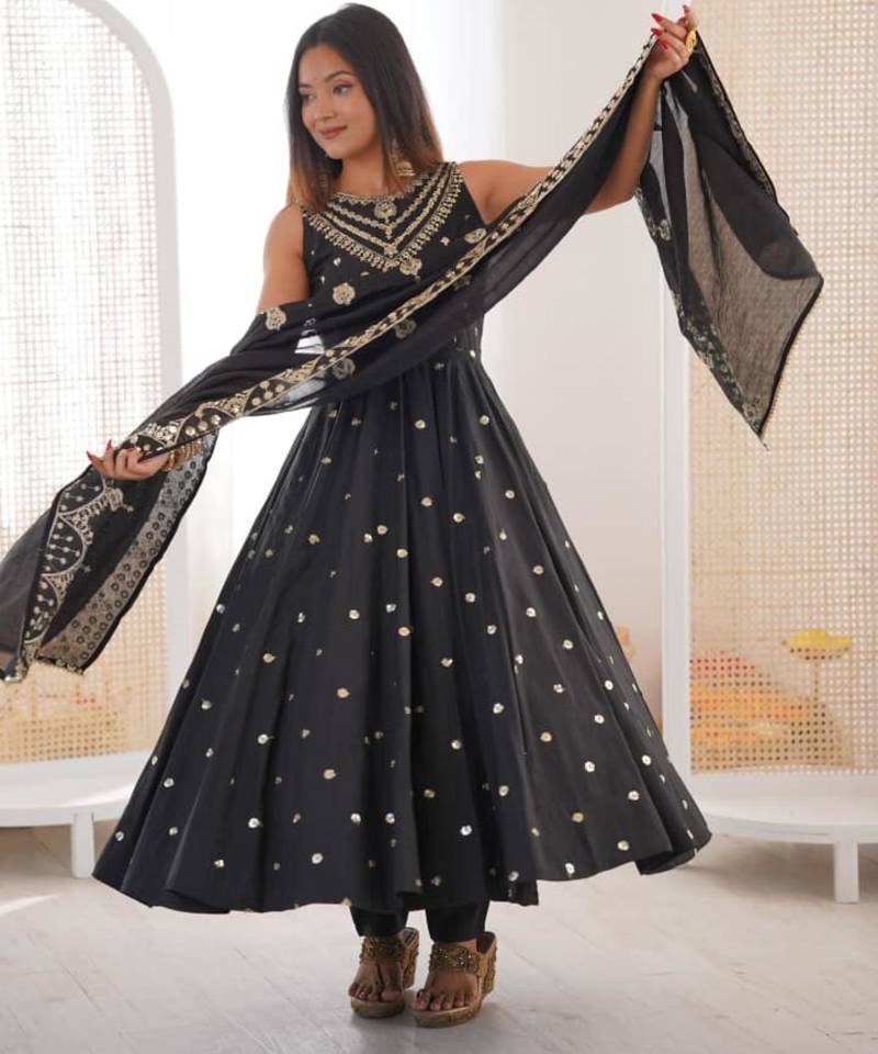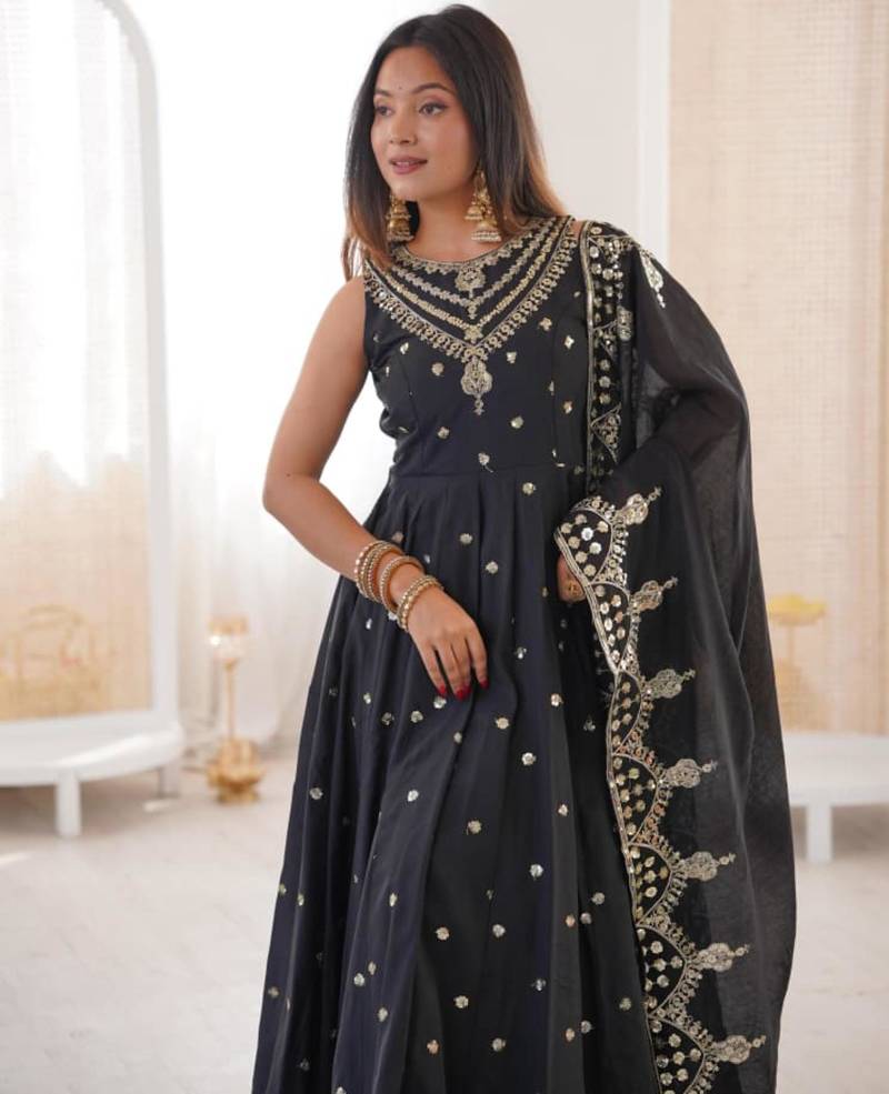 | Product Name | Black Silkblend Embroidered Gown Set | |