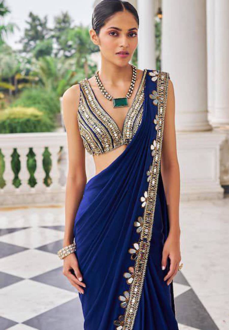 | Product Description | Make A Bold Statement With This Blue Georgette Saree. The Modern Silhouette Is Accentuated By A Meticulously Crafted Border Featuring 3 D Floral Appliqués And Shimmering Beadwork. Designed For The Contemporary Woman, This Silk Blend Piece Combines Effortless Wearability With A High Fashion, Editorial Ready Aesthetic. |