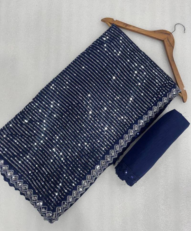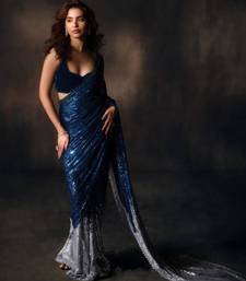 | Product Description | Capture The Spotlight With This Blue Saree. Fully Embellished With Shimmering Sequins, The Fluid Drape Creates A Mesmerizing Liquid Like Shine. Paired With A Sleek Velvet Sweetheart Neck Blouse, This Modern Masterpiece Is Designed For Cocktail Parties And Glamorous Evening Soirées. |