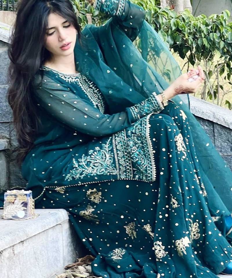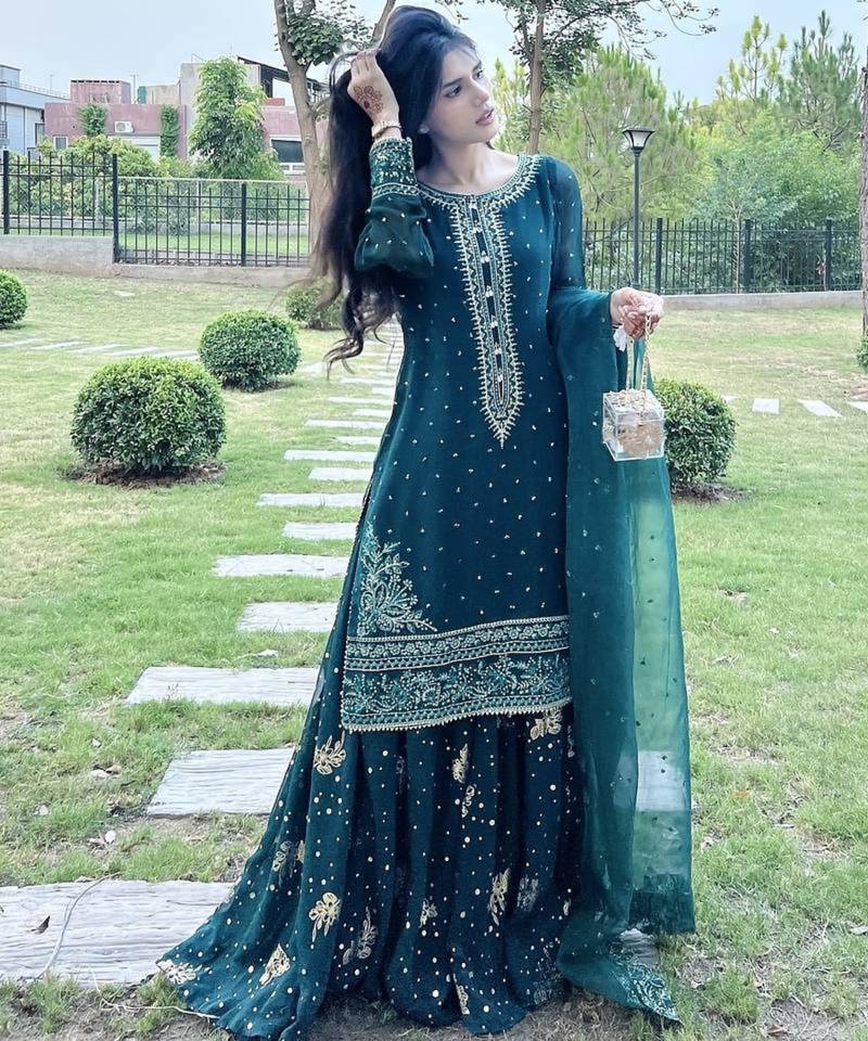 | Product Name | Blue Georgette Embroidered Sharara Set | |