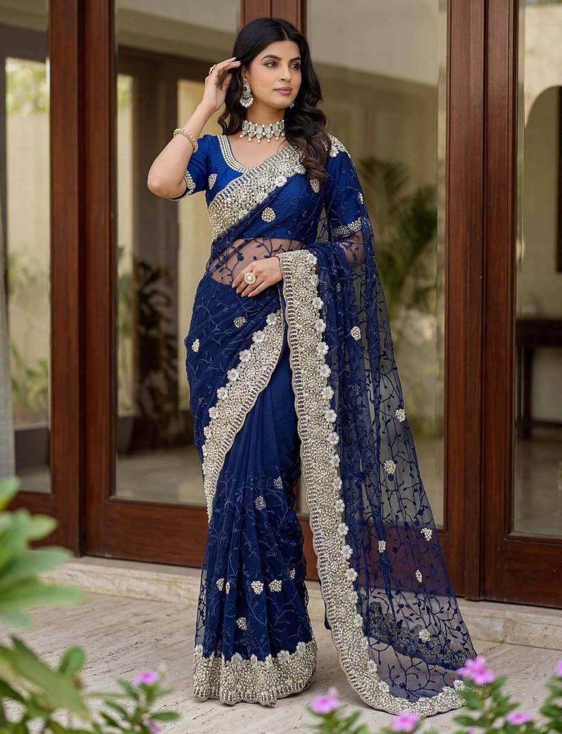 | • | Saree | : | Color- Blue / Fabric- Net |