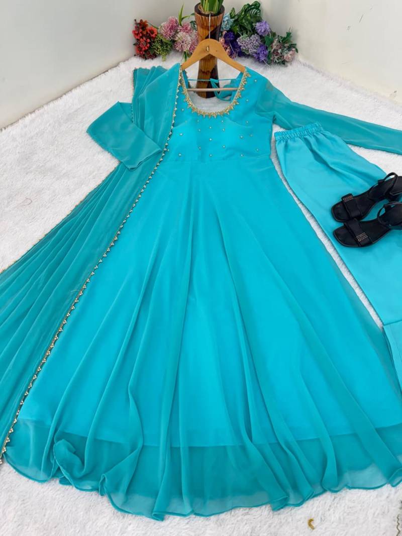 | Product Name | Dark Sky Blue Georgette Plain Gown Set | |