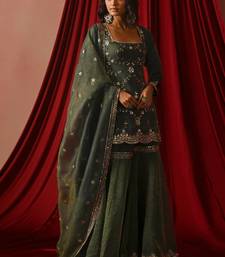Green silkblend embroidered sharara set stitched