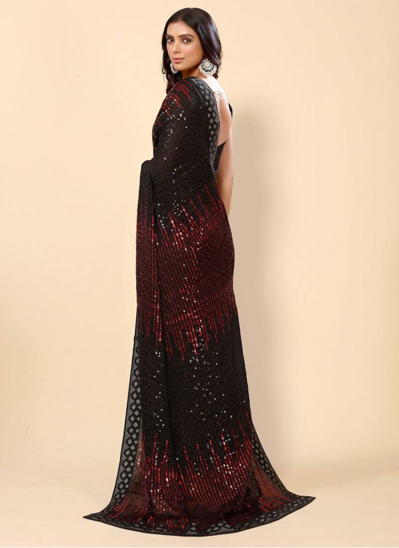 Maroon and black party wear georgette saree with stunning heavy sequin embroidery