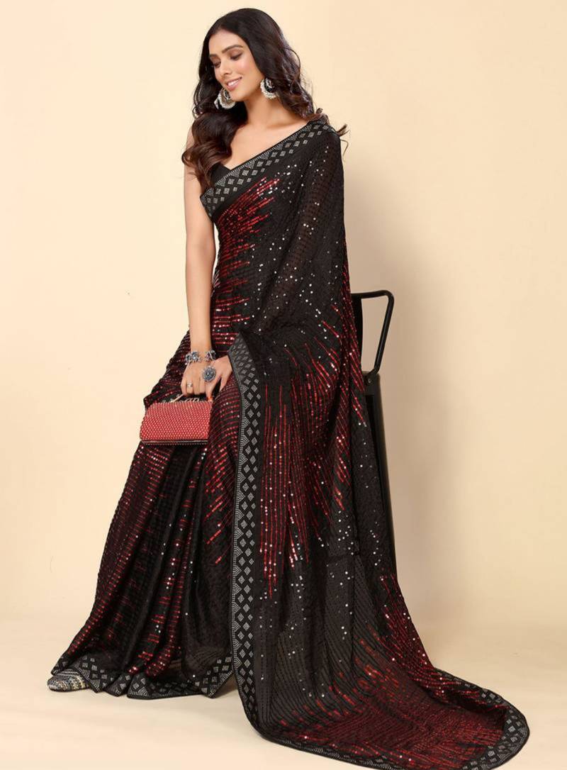 | Product Name | Maroon And Black Party Wear Georgette Saree With Stunning Heavy Sequin Embroidery | |