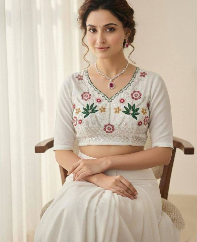 | • | Blouse | : | Color- Cream / Fabric- Georgette |