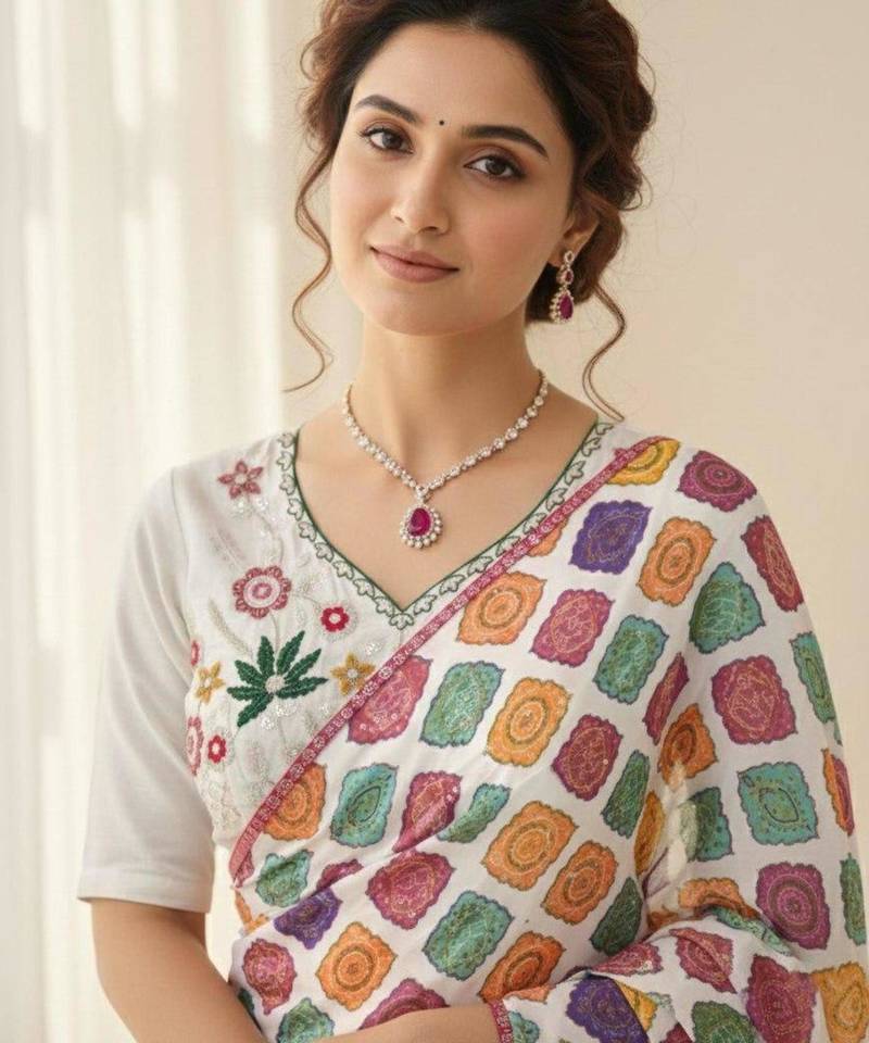 | Product Name | Multicolor Printed Saree With Colorful Geometric Motifs And Floral Blouse | |