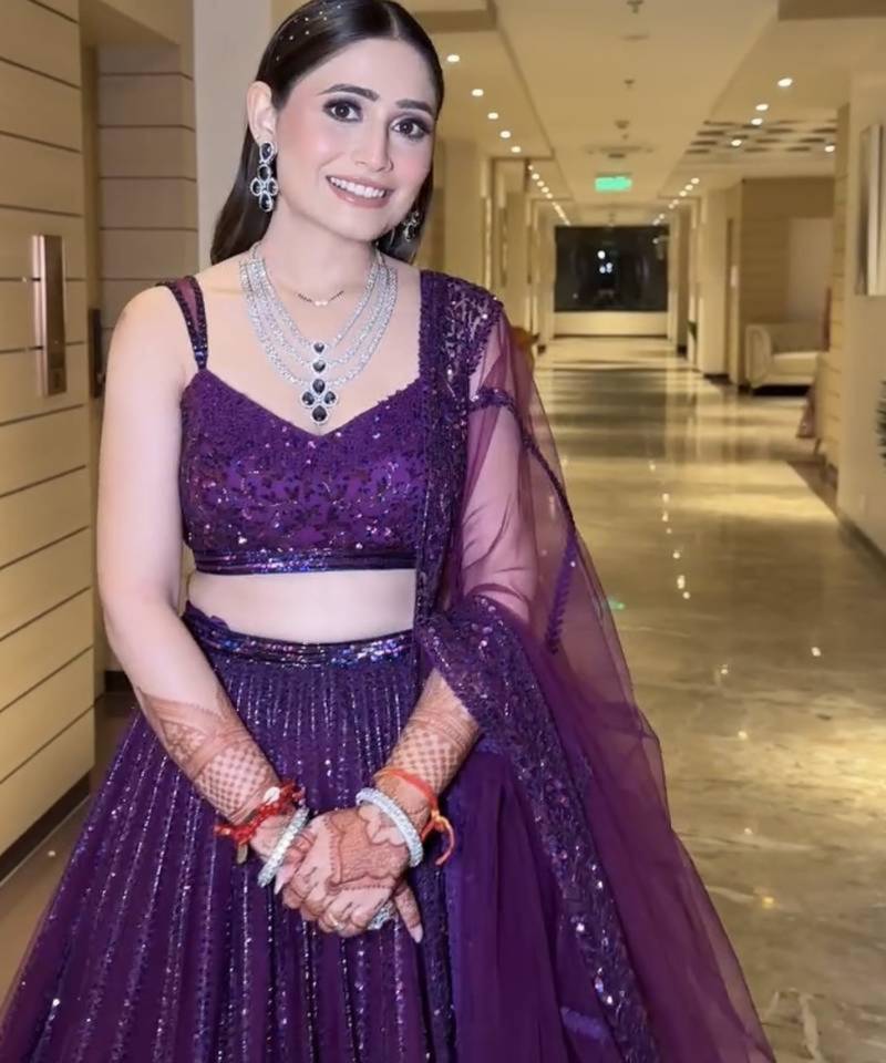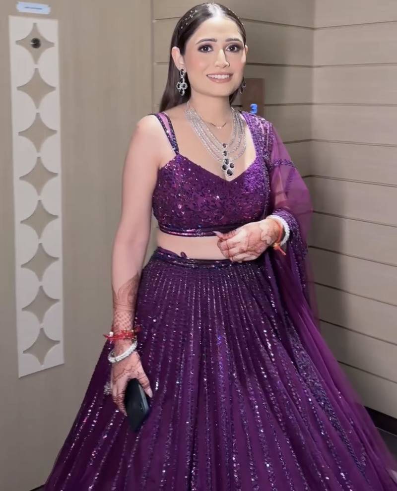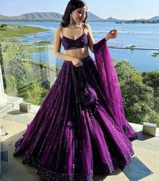 Purple net lehenga with heavy sequins and dori work | designer party wear wedding lehenga choli with blouse