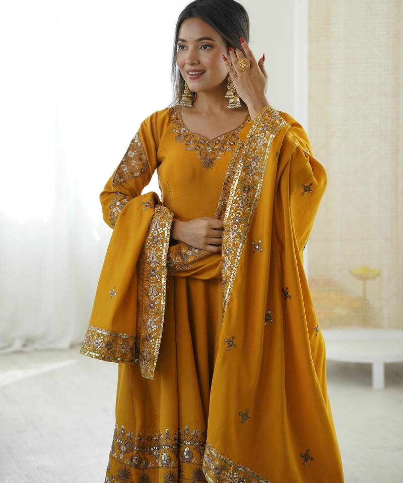 | • | Dupatta | : | Color- Mustard / Fabric- Silk Blend |