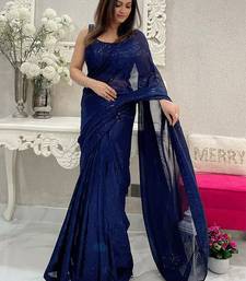 Blue all-over sequins striped georgette party wear saree with blouse piece