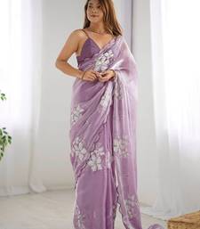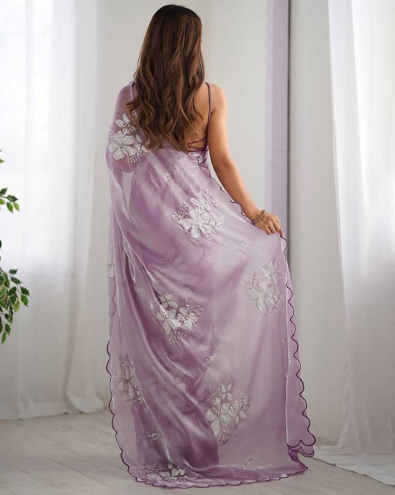 Onion silver floral cutwork embroidered organza party wear saree with blouse piece