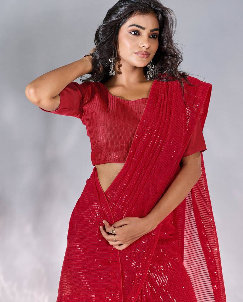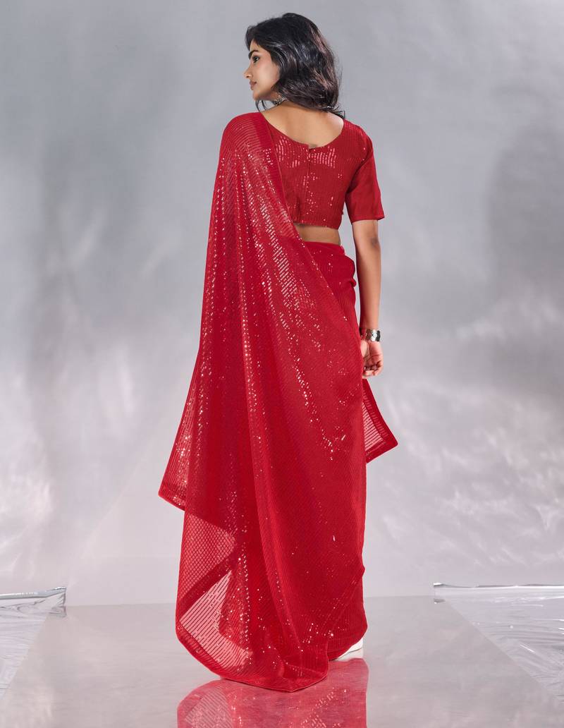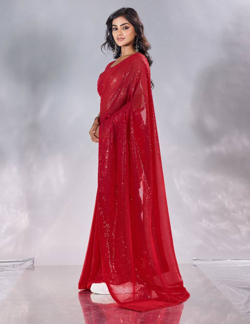 Pure georgette embellished sequinned party wear saree