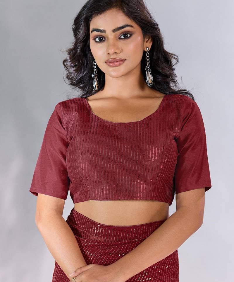 | • | Blouse | : | Color- Maroon / Fabric- Satin |