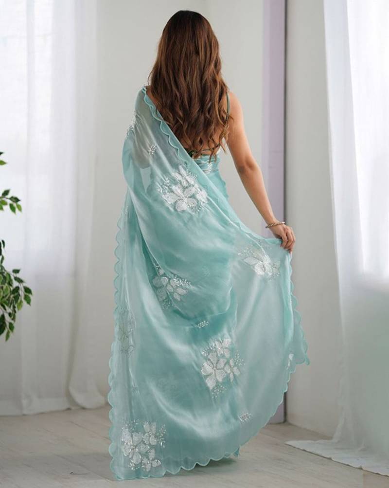 | Product Name | Sky Silver Floral Cutwork Embroidered Organza Party Wear Saree With Blouse Piece | |