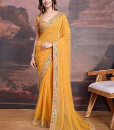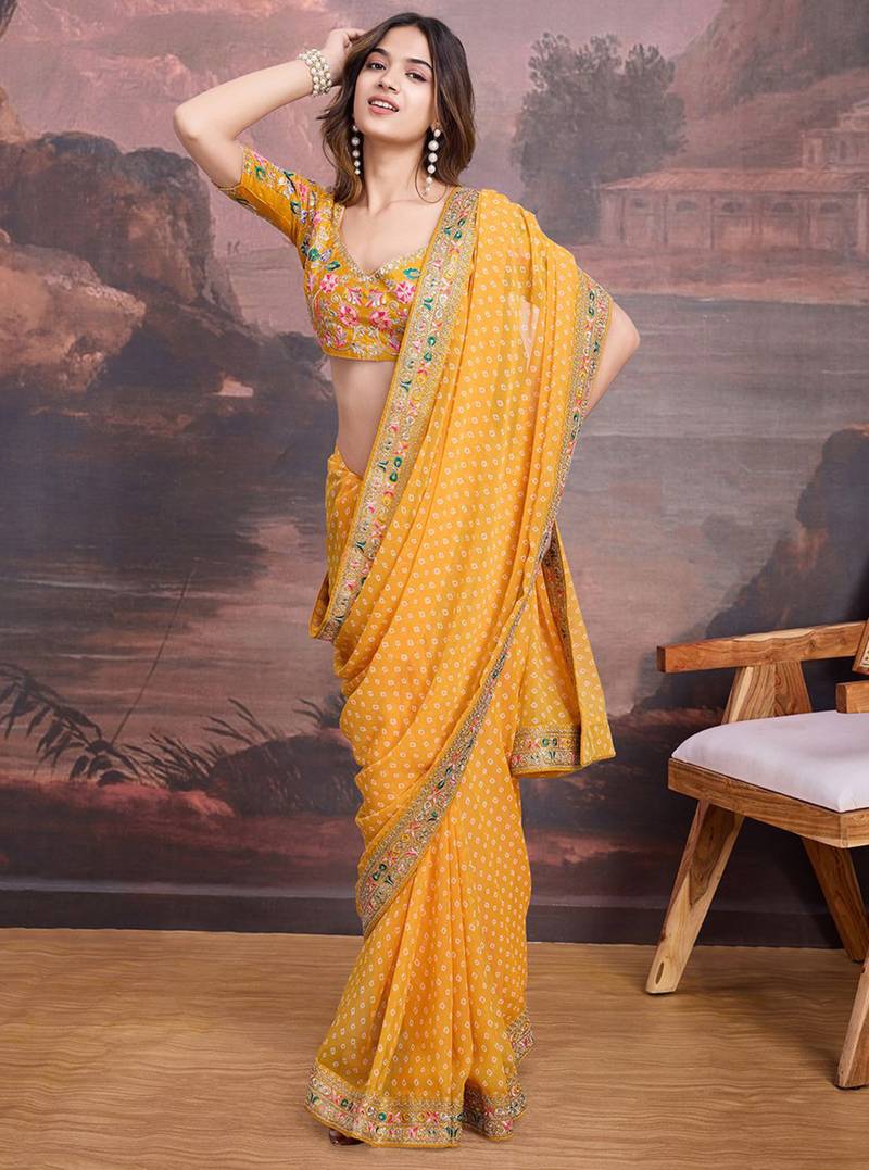 | Product Name | Yellow Bandhani Printed Georgette Saree With Multi Color Embroidered Border And Blouse Piece | |