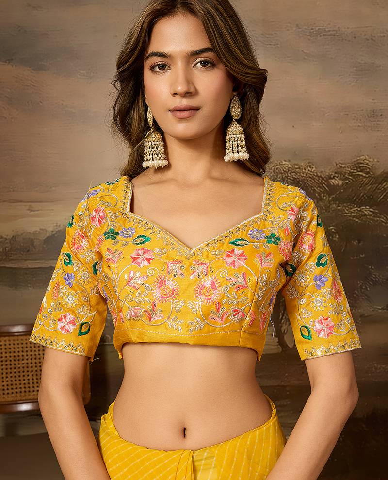 | Product Name | Yellow Embroidered Leheriya Georgette Saree With Designer Border | |