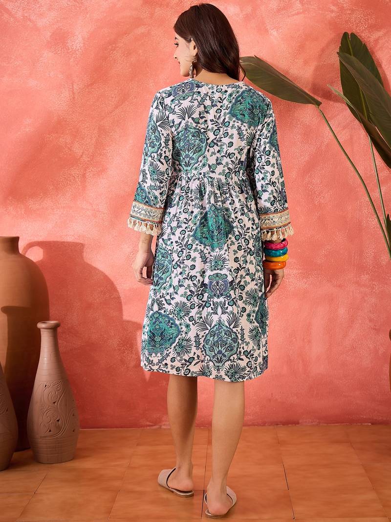 | Product Description | Step Into Bohemian Bliss With This Emerald Bloom Tassel Dress. Perfectly Balancing Artisanal Craftsmanship With A Relaxed Silhouette, This Knee Length Piece Is A Go To For Effortless Daytime Charm, Vacation Escapes, Or Vibrant Outdoor Gatherings. |