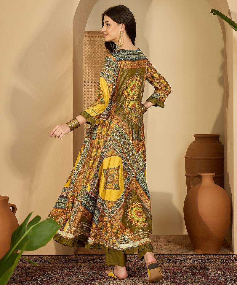 | Product Description | Step Into A Blend Of Traditional Charm And Contemporary Flair With This Stunning A Line Anarkali Kurta Set. Perfect For Festive Gatherings, Pre Wedding Celebrations, Or Upscale Ethnic Events, This Ensemble Is Designed To Make A Sophisticated Statement. |