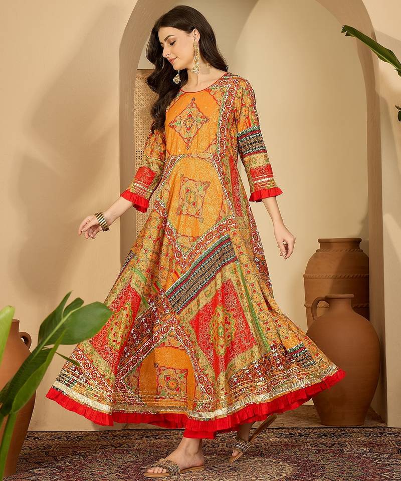 | Product Description | Elevate Your Ethnic Wardrobe With This Vibrant And Gracefully Designed Anarkali Kurta, Perfect For Festive Celebrations And Special Occasions. This Ensemble Beautifully Blends Traditional Craftsmanship With A Contemporary Silhouette, Ensuring You Stand Out With Effortless Elegance. |