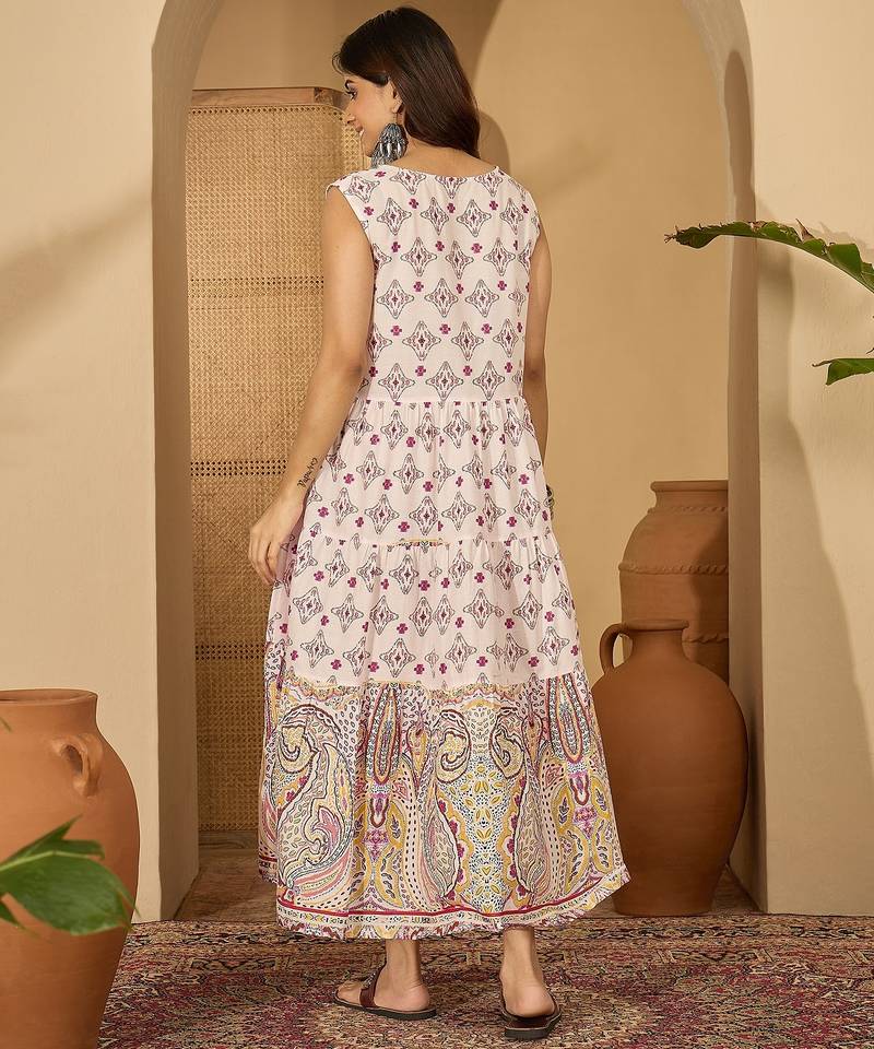 | Product Description | Embrace Artisan Inspired Luxury With This Amethyst Paisley Tiered Maxi Dress. This Piece Is A Celebration Of Heritage Prints And Playful Textures, Making It A Quintessential Choice For Festive Brunches, Sunshine Filled Getaways, Or Elevated Daytime Events. |