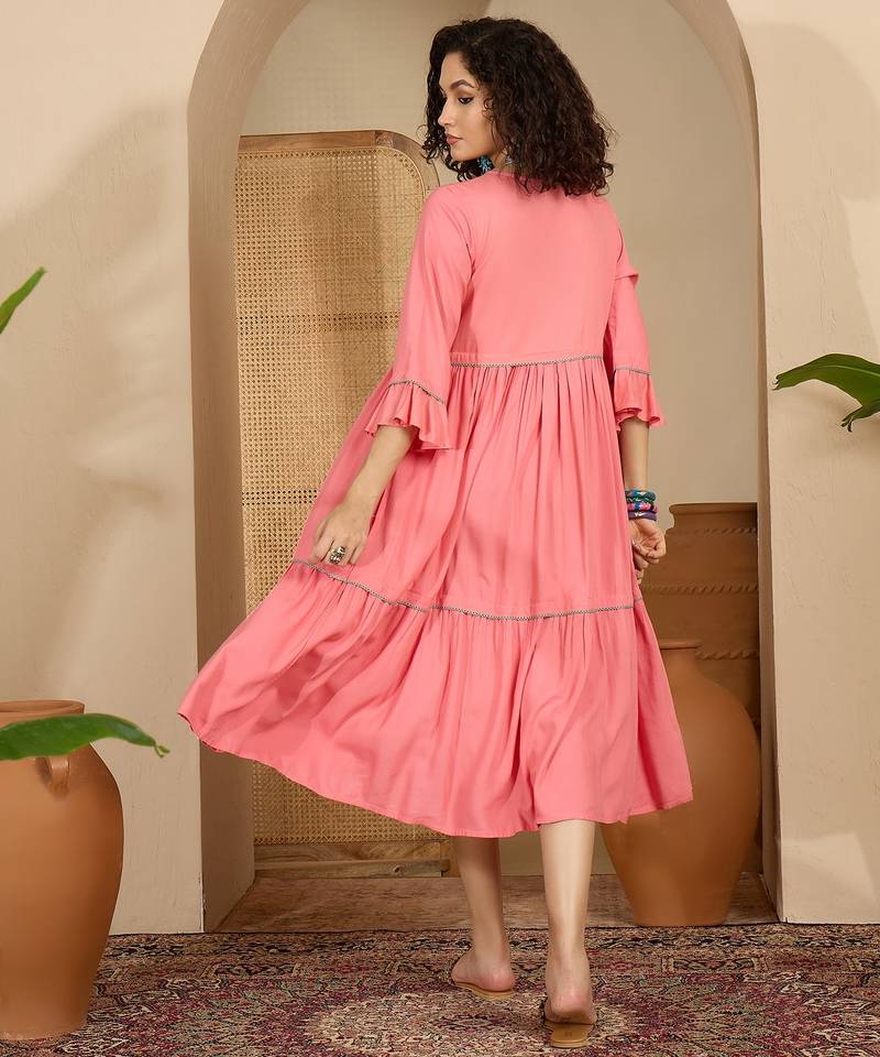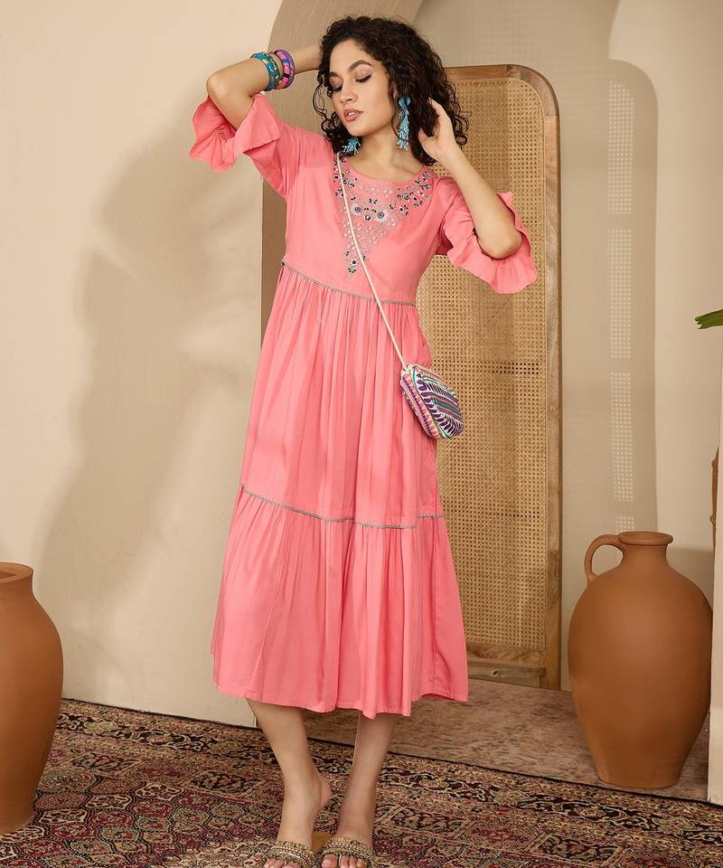 | Product Description | Embrace Effortless Charm With This Peach Pink Tiered Midi Dress. Designed For The Modern Woman Who Loves A Touch Of Traditional Detail, This Dress Features A Soft, Flowy Silhouette That Moves Beautifully With Every Step. |