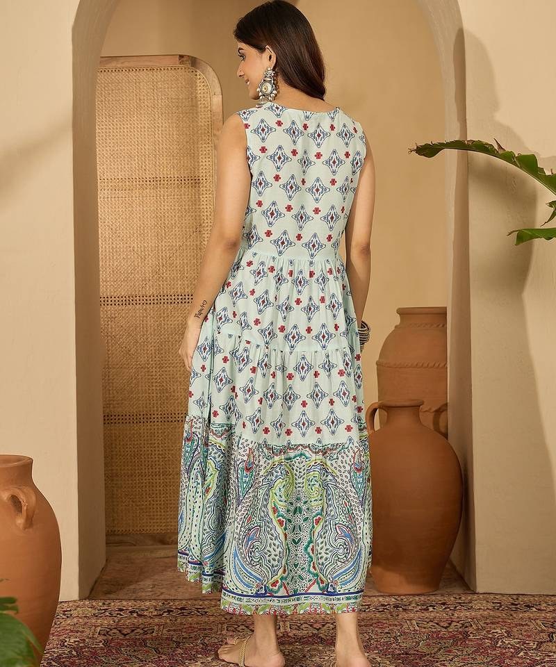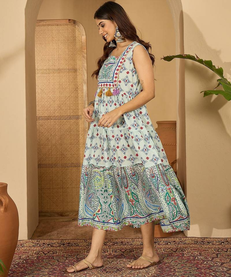 | Product Description | Channel A Blend Of Tradition And Contemporary Flair With This Eclectic Print Sleeveless Midi Dress. Featuring A Vibrant Mix Of Geometric Patterns And Bohemian Paisley, This Dress Is An Artistic Addition To Your Casual Chic Wardrobe. |
