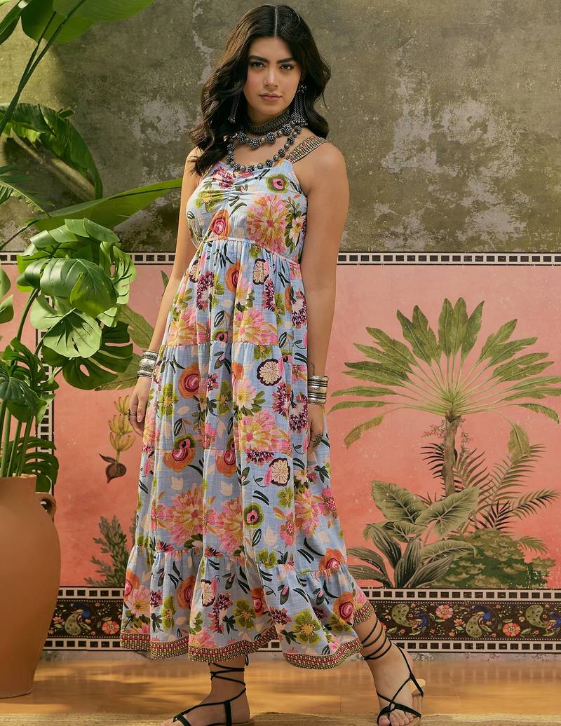 | Product Name | Daylist Women's Printed Cotton Slub Sky Blue Sleeveless Dress | |
