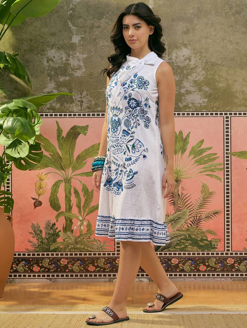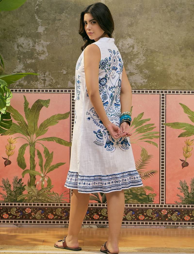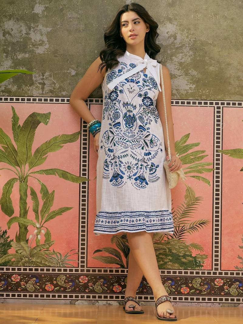 | Product Description | Exude Timeless Mediterranean Charm In This Indigo Porcelain Print Shift Dress. Featuring A Crisp White Base Adorned With Ornate Blue Botanical And Geometric Patterns, This Piece Offers A Clean, Refreshing Aesthetic Perfect For Seaside Dinners, Summer Garden Parties, Or Elevated Daytime Outings. |