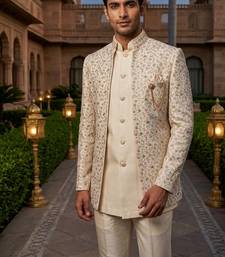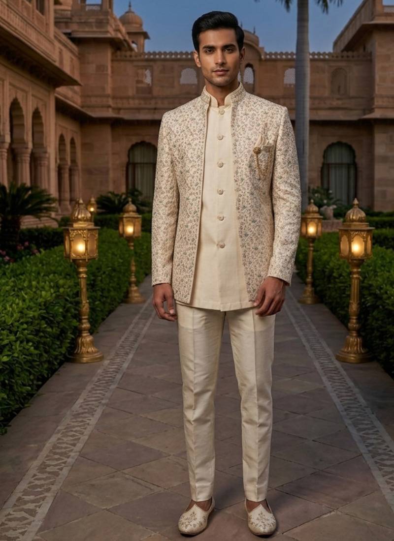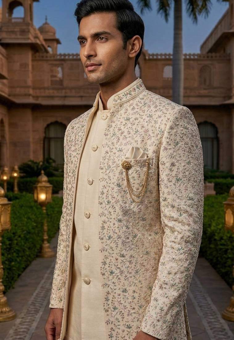 Product Name Cream Thread And Sequins Embroidered Short Indowestern